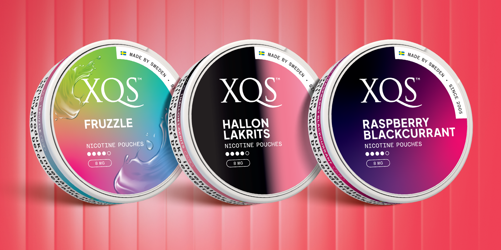 XQS är små, tobaksfria påsar som placeras under överläppen och frigör nikotin och smak under 20–30 minuter. De är avsedda för vuxna nikotin- eller snusanvändare. Produkten är inte riskfri – nikotin är ett starkt beroendeframkallande ämne.